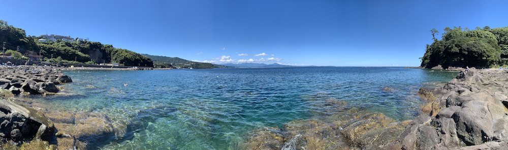 これ、実は約10万年前の火山活動の名残りなんですって。波に削られて、長い年月をかけてこの形になったなんて、感動しませんか? 干潮時にはなんと岩礁が現れて、歩いて渡れちゃうんです!
