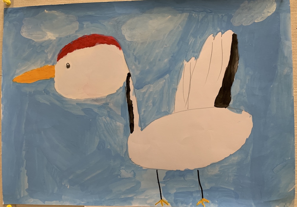 つるのはねをがんばりました。ぜんぶ色はじぶんでつくりました。