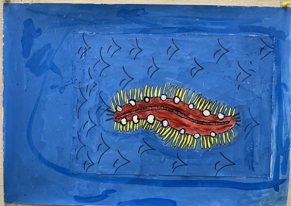 まなづるこうのうみけむしをみてびっくりしたけどキレイでかわいかったのでかきました。