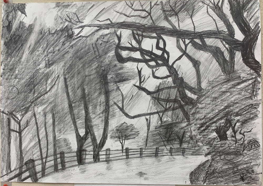 あと数年でなくなってしまうこの「まなづる小学校」を絵に残したいという想いで描きました。ぼかしなどを使って影を工夫したので観てほしいです。