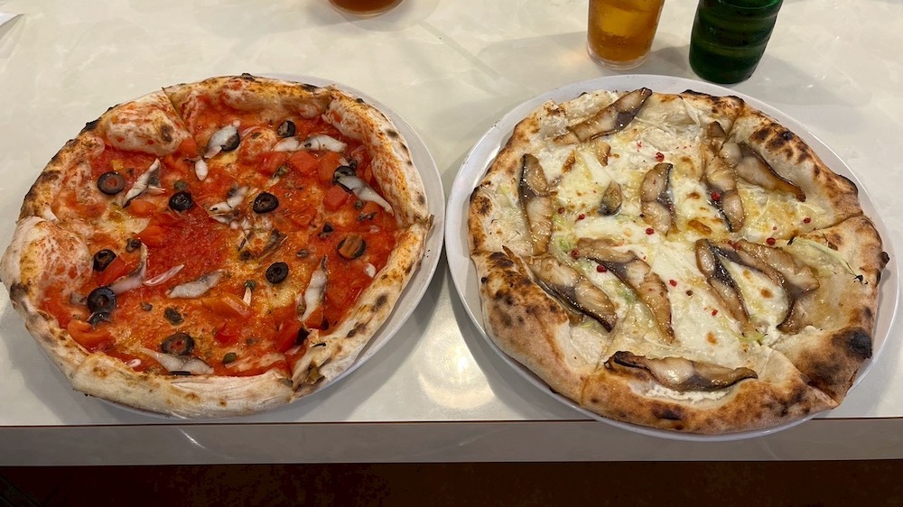 メニューは「マルゲリータ」や「4種のチーズ」など、どこのお店にもあるスタンダードなピザも美味しいのですが、ぜひ挑戦して頂きたいのが真鶴ならではの「お魚のピザ」……「あじとうずわのマリナーラ」と「さばみりんとリコッタチーズ」です!!