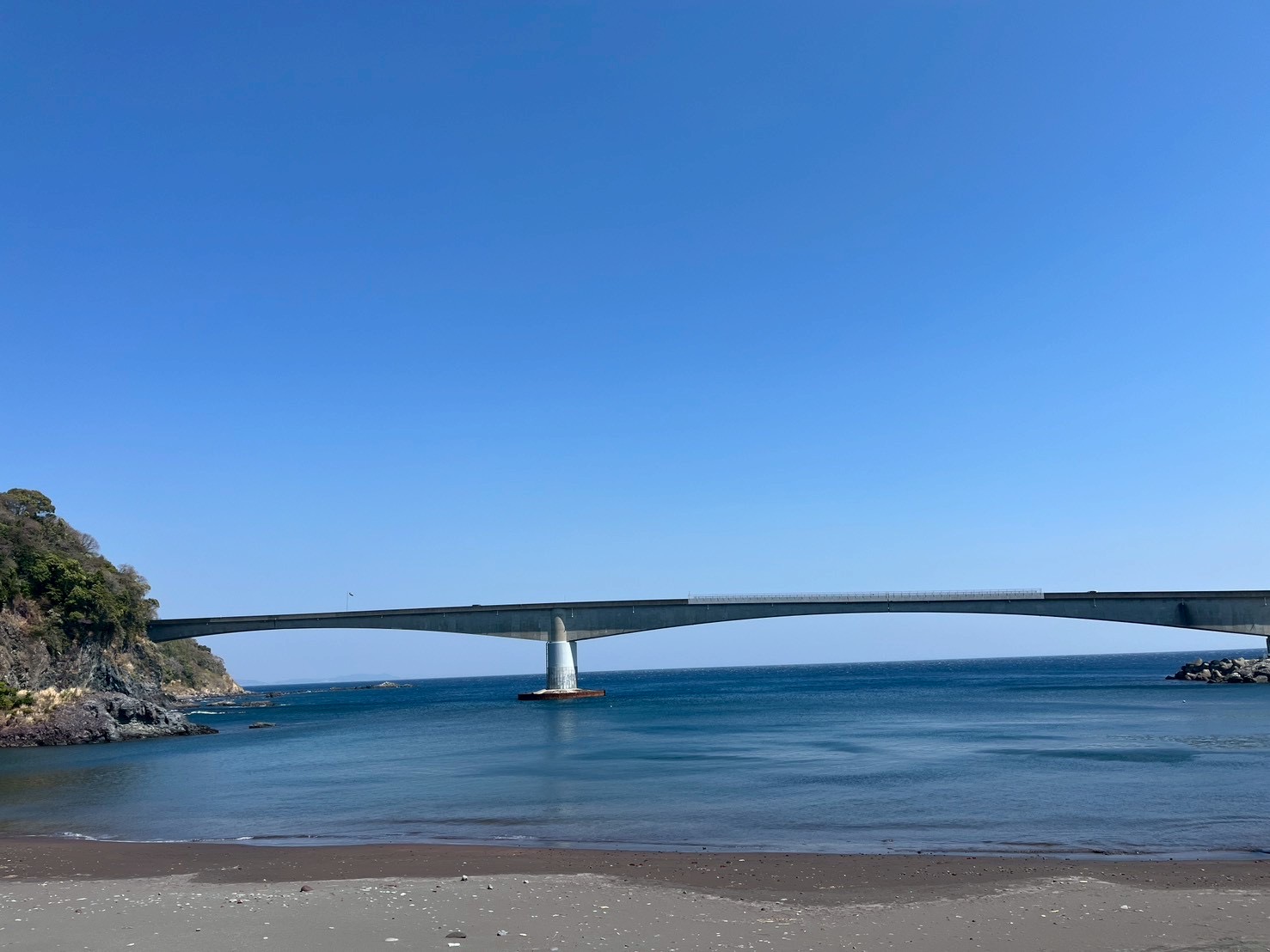海の近くのハンバーガー屋さん。『スィースィーバーガー』さんのご紹介です。真鶴駅を出たら左方面へ。坂道を下って行った先に辿り着く小さな入り江、そこは「岩海岸」……澄みわたる空と穏やかな海をまたぐ大橋がダイナミックな、真鶴の名所の一つです。
