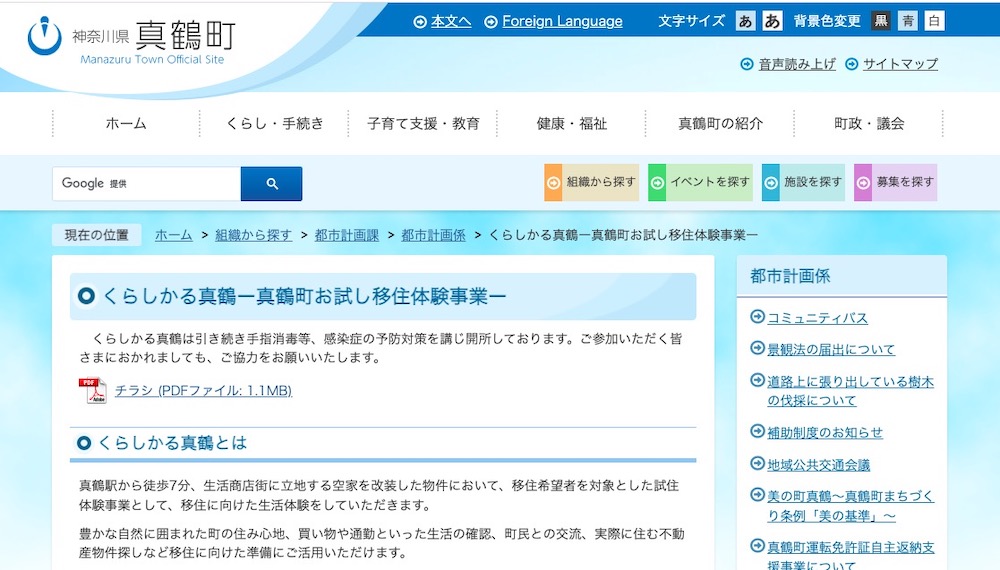 今後、変更があるかもしれませんが、この記事を書いている時点(2025年12月現在)でのご利用方法を説明いたします。もし、時間が経ってしまっているようでしたら、こちらの真鶴町のサイトでご確認ください。