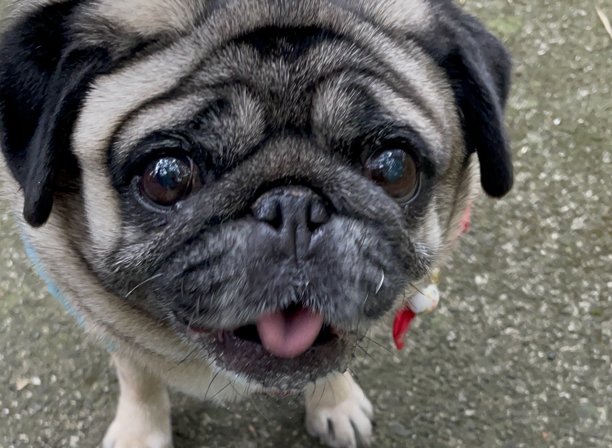 女将さんは「ブサカワ」が魅力の犬種、大のパグ好きで、のり子ちゃんでなんと4代目になるそうです。伊藤家にやってきてから美味しいものをたくさん食べて、幸せ太りで2kgも増えてしまったのだとか。