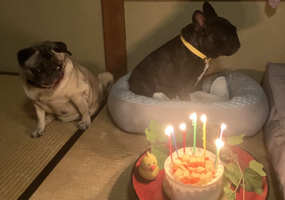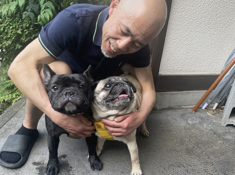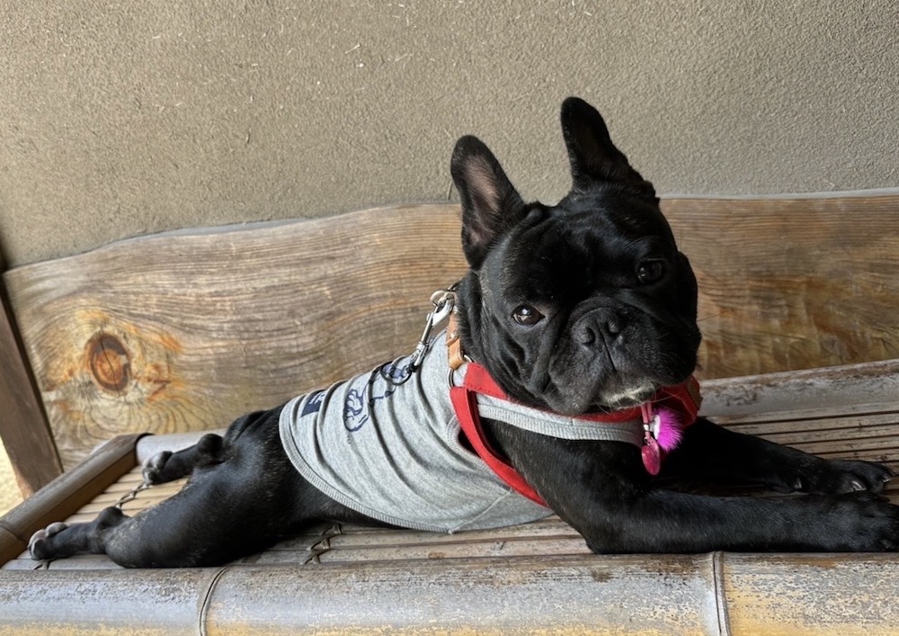 一方のシャリーちゃんはフレンチブルドッグ。ずっと「一生パグしか飼わない!」と決めていた女将さんでしたが、3年前、お店のお客さんの家でフレブルが生まれた際、「飼いませんか?」という熱心なアプローチに負けて、家族に迎えることになったそうです。
