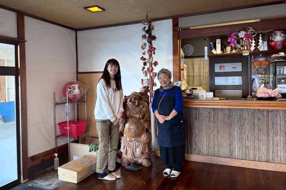 ふぅ〜お腹いっぱい、満腹っ!! ゆっくりお茶を頂いて、海の景色を堪能してから、お会計をしに階段を降りて、1階のカウンターに向かいました。そうしたら見覚えのあるおかみさんが出てきて「あら、花菜ちゃん!」……やっぱり覚えていてくれました。