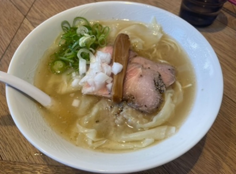 豚骨系とか横浜家系のようなこってり系でもないし、淡麗とか支那そばと言われるようなあっさり系とも言い切れません。その中間というのでしょうか? メインメニューの「豚鶏そば(醤油)」も「豚鶏そば(塩)」も、透き通った透明なスープをレンゲで底の方から掬うと、ちょっとコッテリとした要素が……。