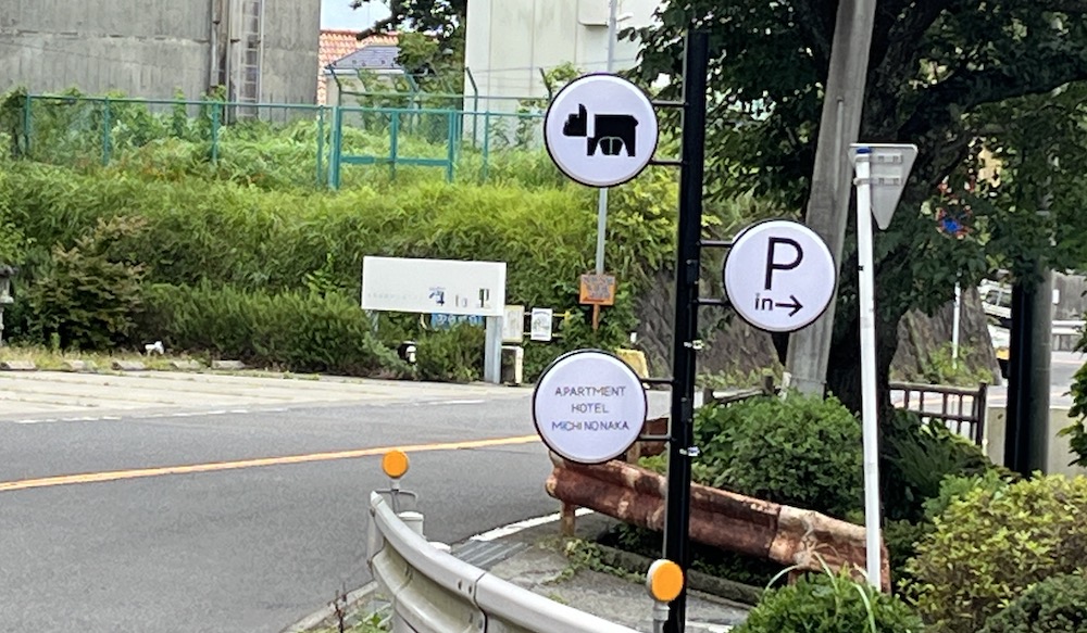 場所は半島の山側の道を上がってしばらく先、WeekendCafe『海辺の途中』さんの道を挟んで反対側……とご説明すれば、ピンとくる方も多いのでは? 名前も対照的で憶えやすいですしね。『海辺の途中』と『途乃中(みちのなか)』。さらにこの看板をご覧になれば……。