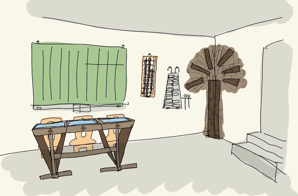 これらを新しいスペースの内装として蘇らせます。例えば、跳び箱をリメイクした個性的な机や、教室で使われていた可愛いフォルムの椅子。 おじいちゃん・おばあちゃん世代から子どもたちまで、「あ! これ知ってる!!」と会話が弾むような、懐かしくも新しい空間をデザインしていきます。