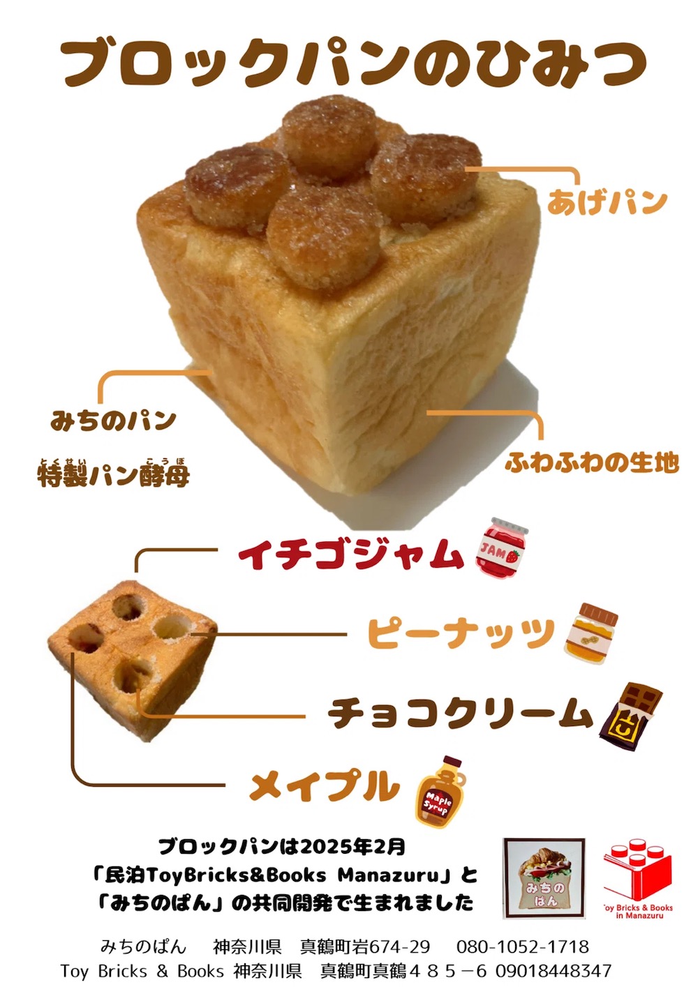週末の3月14日(土)と15日(日)は、10時〜17時の間(なくなり次第終了)、トイブリブーと『みちのぱん』が2024年に共同開発して生まれたブロックパンを、1周年を記念して販売します!