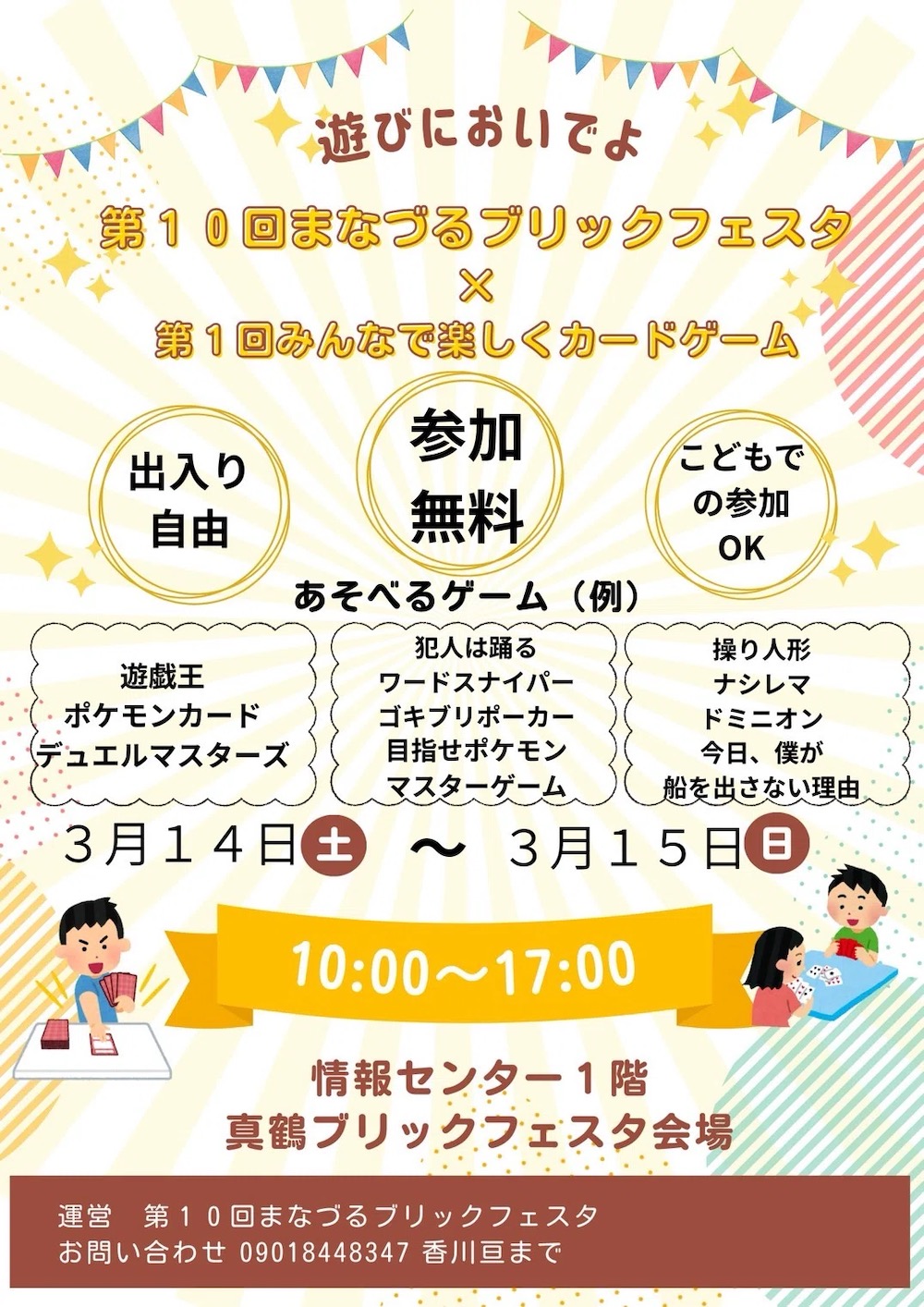 2023年3月から始まった『まなづるブリックフェスタ』……今回はレゴブロックで遊べるブース、ボードゲームやカードゲームで遊べるブース、みちのぱんのパン販売。3つのブースを運営します。