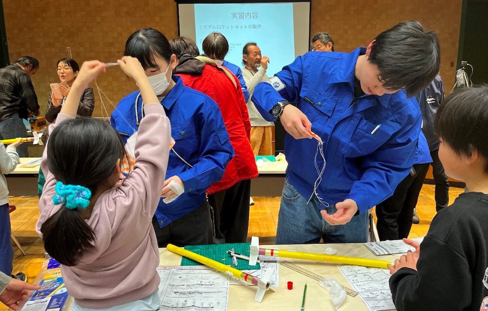 最初にモデルロケットについての講座を受け、知識を深めてもらい、その後大学生達と協力してモデルロケットを実際に製作します。最後は自分で作ったロケットを打ち上げます!