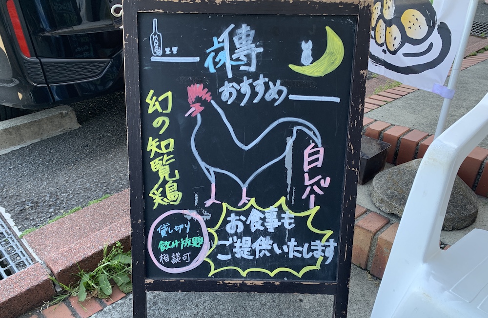 一番のウリは外看板にも掲示されている「知覧鶏」の焼き鳥!! 知覧と言えば鹿児島にあるお茶の葉っぱも有名な所ですよね。そんな自然いっぱいの地で、市場に出回る鶏肉(およそ生後50日で出荷)の数倍、450〜700日かけてしっかりと育てられ、熟成された知覧鷄は、コクと歯ごたえが違うそうです。お店で手打ちされて、これもまた炭火で丁寧に焼かれます。