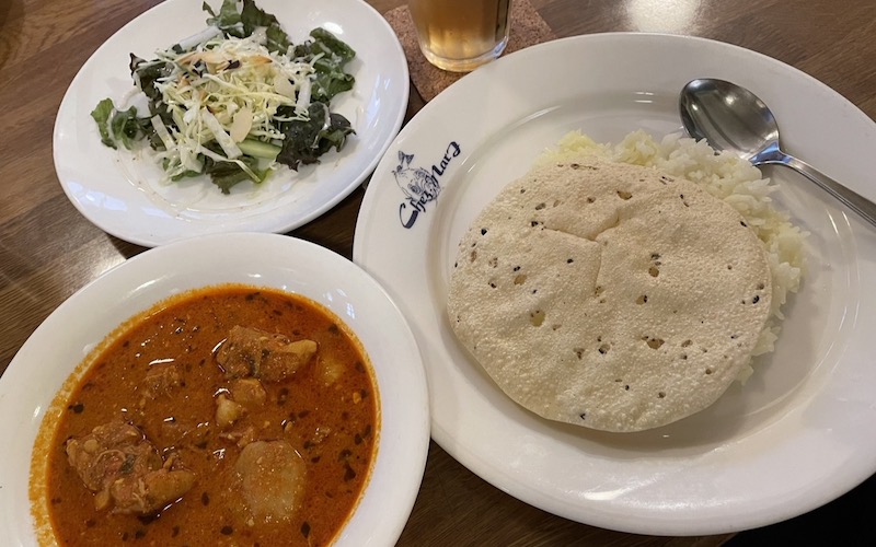 夕飯にはINUTABIさんとスパイスドッグというカレー屋さんにいき、チキンカレーと梅ジュースを飲みました。愛犬と一緒に店内でご飯を食べることができて、店主さんの趣味のロックに関するものなどもたくさんありました 。