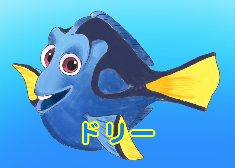 ナンヨウハギは映画「ファインディング・ニモ」のドリーとして多くの人に知られるようになった魚です。どんなときも明るく好奇心旺盛な性格で、極度の忘れん坊なイメージのドリーですが、宮古島で見た野生のナンヨウハギは十数匹の群で、警戒心が強く、人が近づくとすぐにサンゴの間に隠れてしまいました。