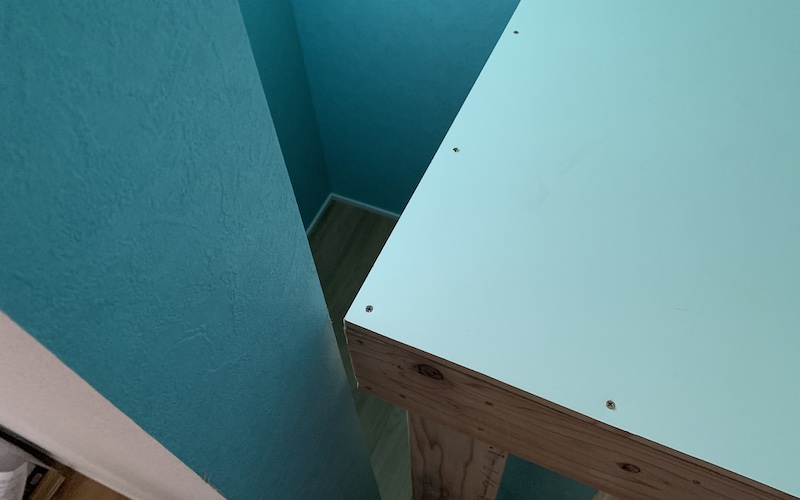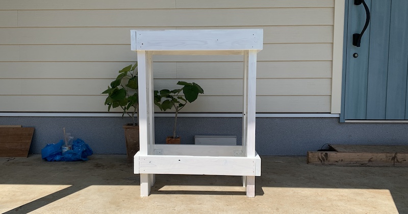 「電動ドライバー」で木ネジをしっかり奥まで入れて水槽台を組み立てました。電動ドライバーは小さい頃からたまーに使っているので、余裕のよっちゃんでした! あとは、紙やすりを軽くかけてペンキで白色を塗るだけ! だと思っていましたが……