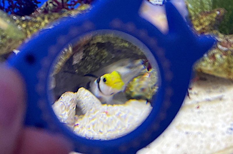幼魚水族館の入口にあるルーペのガチャポンを引いてみました。小さな幼魚も大きく見えて便利!