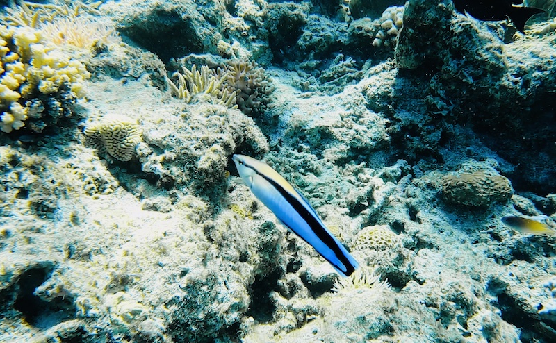 沢山のサンゴとイソギンチャクがあるスポットで、なんと、ホンソメワケベラを見つけました! 私がチョウチョウウオ以外で1番飼ってみたいとずっと思っている魚です。潜ったりしながら一生懸命に追いかけました。