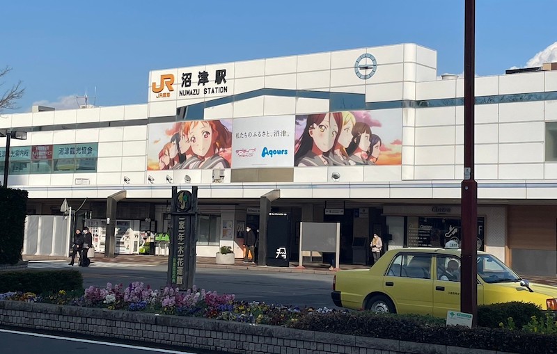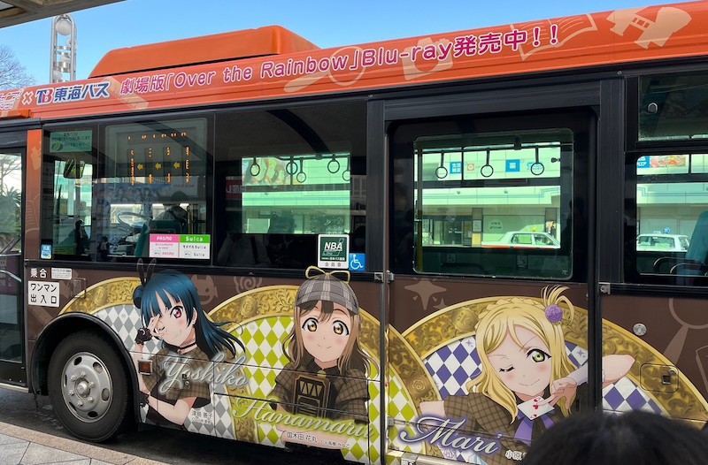 アニメ効果によって沼津の街中はバスのラッピング、駅の看板、コロナ感染対策の呼びかけポスターにまで「ラブライブ!サンシャイン!!」のキャラクターがたくさん使われています。