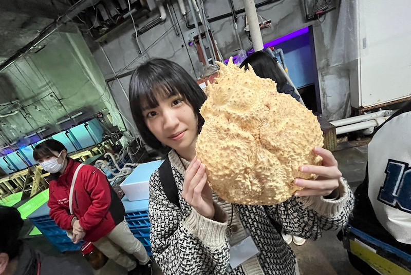 他にも、先日沼津の漁港で水揚げされたオロシザメも恐る恐る触りました。名前の通り「おろし金」を柔らかくした感触? タワシを触った感触? ……何にも喩えがたい感触でした。タカアシガニのながーい足や大きな甲羅の殻にも初めて触りましたよ!!