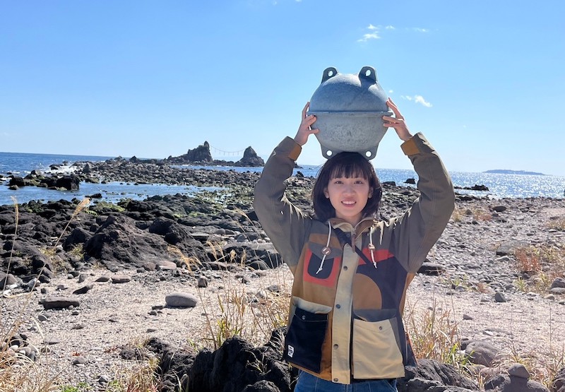 一見「カエルの顔」のようにしか見えないのですが、これは漁に使う道具だそうです。名前は「ぼんでん」……通称「浮き玉」ですね。網などのしかけを設置したところに、目印として使うんだそうです。