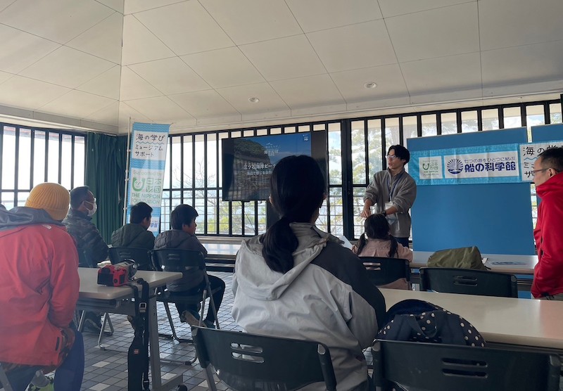 最後に「遠藤貝類博物館」に戻り、体験したビーチコーミングのまとめをしてもらいました。その中で私が気になったのは「磯焼け」です。最近の真鶴の海では「カジメ」という海藻が減少し、魚の住処がなくなってしまいました。
