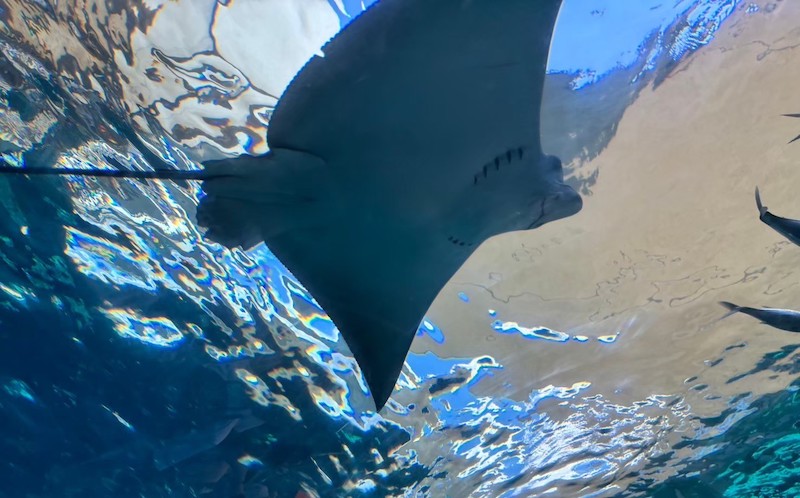 また日本ではイルカなどが展示されていそうな大っ〜きな水槽に、マルコバンというお魚が円を描くように泳いでいました。見た目は釣りで有名なGT(ジャイアントトレバリー)に似ていて、同じアジ科。とっても雄大で、見ていて気持ちよかったです。