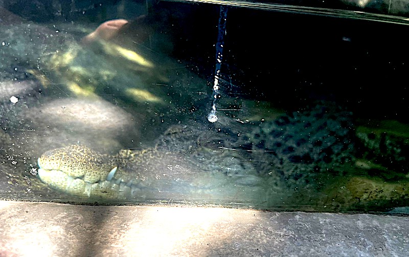 セブ島の水族館で1番の驚いたのは、とにかく大雑把なところ!! 「大っきいサイズの生き物を展示しとけばいいや!」と言っているような迫力満点で面白い水槽が沢山あります。淡水魚がたくさん入っている水槽にワニが入っていたりして……、