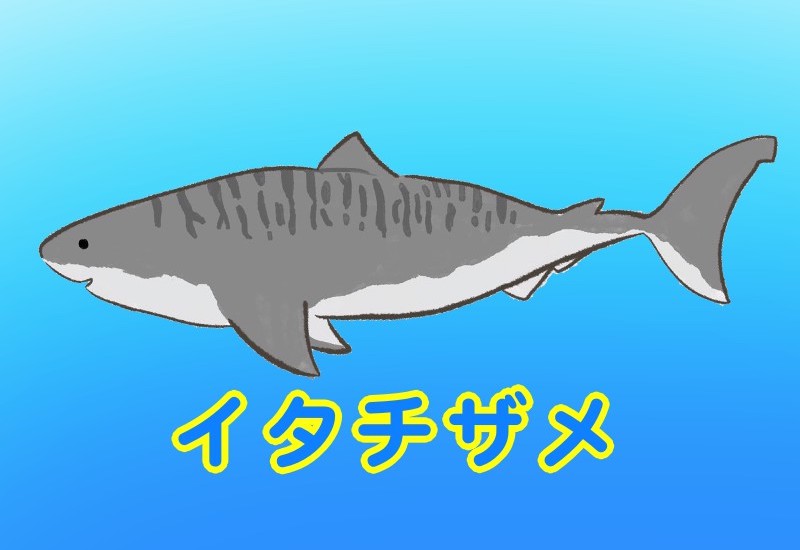 いつものお魚紹介コーナーは、特徴的な縞模様がかわいい「イタチザメ」です。雑食性で、魚類やウミガメ、鳥、さらにはゴミまで何でも食べるため「海の掃除屋」さんとも呼ばれています。