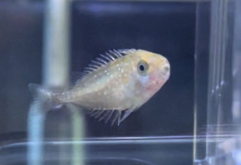 ビューンとすごい勢いで泳ぐ魚を発見したので掬ってみると、まだ体が透明なアイゴの赤ちゃんでした。毒のある背びれの棘には注意です。刺されると激しい痛みを伴うため、釣り人からは「バリ」と呼ばれて敬遠されています。