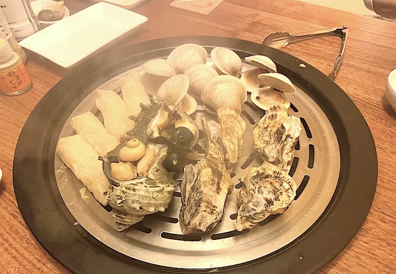このお店から流れてくるBGMを聴きながらいつも採集をしています。もちろんご飯もとても美味しくて、オススメなのは蒸気鍋コース! 「魚介は蒸して食べるのが一番」という漁師さんの知恵から生まれた新感覚料理です。