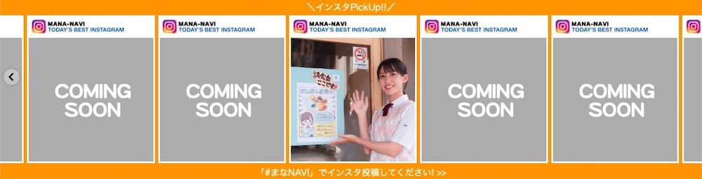 ただ!!「PickUpインスタ」だけは毎日更新を予定しています!! 先ほどのTOP画像の下にある写真の帯、ここにあなたが撮影された素敵な写真をぜひ掲載させてください。投稿時に「#まなNAVI」を付けて下さるだけでOKです!