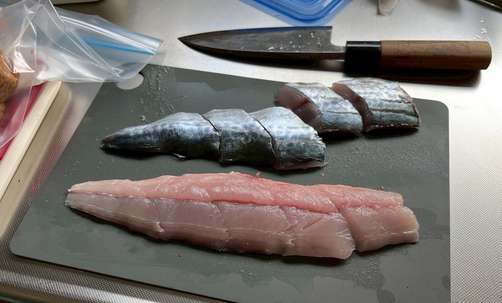 毎日美味しくお味噌汁を食べていましたが、「それだけじゃ勿体ない……」と思っていたところ、母がご近所さんからサゴシを貰ってきました。真鶴町の定置網で獲れたものだそうです。サゴシはサワラの幼魚なので、自家製味噌で自家製味噌漬けにしてみよう! と考え、早速作ってみました。
