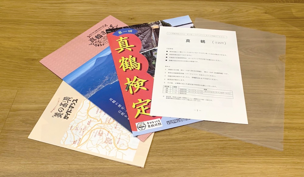 まず最初に、父が「検定セット」を手に入れてきました。通勤で毎日駅を利用しているので。帰り道に改札の窓口で「真鶴検定ください」とお願いすると、「どちらからお乗りになりましたか?」と訊かれたあと、奥からこのようなファイルを出してもらったそうです。