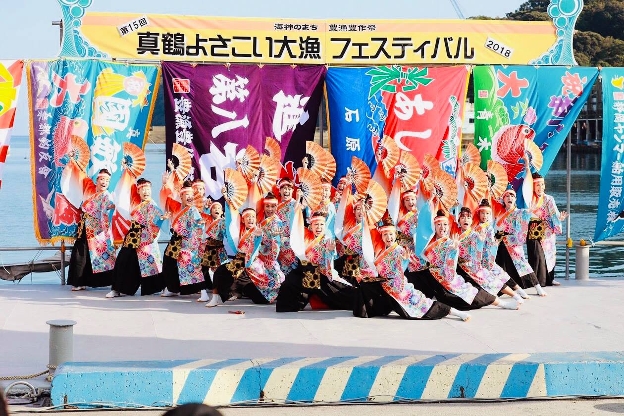 「真鶴」といえば9月に開催される『まな真鶴〜ハワイアンの夕べ』のフラダンスでも有名ですが、もう一つ。11月に開催される『よさこい大漁フェスティバル』も見逃せない一大イベント!! 7月の『貴船祭り』には鹿島踊りがあるし……。