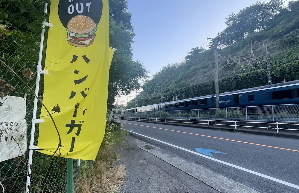 さいごにちょっとした余談を。今から数えると1年半くらい前でしょうか? 私がまだ父と一緒に車で高校に通っていたある日、真鶴の線路沿いに気になるノボリが立ち上がりました。黄色い生地に大きく「ハンバーガー」の文字!!