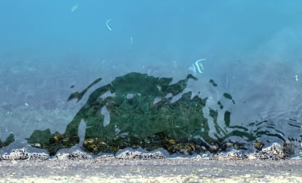 ここだけ漁港の堤防が一段低くなっていて、海面に近くなってるので、柄杓(ひしゃく)でプランクトンを掬うのに都合が良いんです。でも、後ろでは素敵なサンセットタイムに、カップルさんが海を眺めながら『海女家-AMAYA-』さんのテラス席でお食事したりしてる〜!! 羨ましいったらありません!!