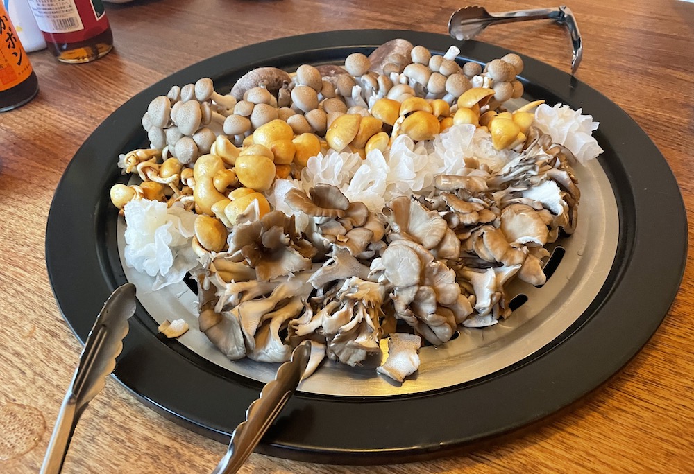 「きのこの盛り合わせ」「野菜の盛り合わせ」「魚介類の盛り合わせ」「豚肉の盛り合わせ(とは言わないか?)」を次々と蒸していくのですが、「みかポン」を始めとして、様々な調味料や薬味で食べていくコースです。