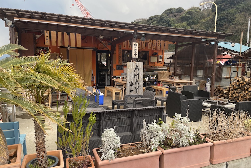 先日、TV神奈川の番組「あっぱれ! KANAGAWA大行進」を観返しているうちに、どうしても行きたくなってしまったお店が出てきました。真鶴漁港にある海女小屋のすぐ隣に建つ、その名も『海女家-AMAYA-』さん。真鶴漁港を眺める素敵なお店です。