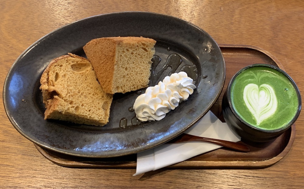 しかも岩手出身の先代から受け継がれたという、嫁入り道具の南部鉄瓶……お店を入ってすぐのカウンターに、どーんと鎮座ましましている見た事ないくらい大きな鉄瓶でお湯を沸かし、これまた代々の抹茶茶碗にミルクフォームでラテアートを描いて。「スターバッ○ス」にはない、見事なお点前を楽しめます。