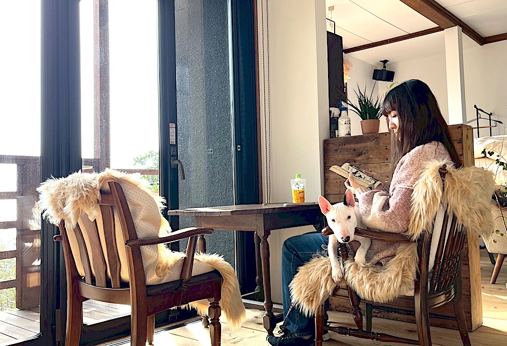 もちろん窓、バルコニーからは海が望めて、センスの良いテーブルやソファなどの調度品に囲まれながら、ゆったりと流れる真鶴時間を味わえます。古い旅館(元「旅館かつら」さん)をリノベするだけで、こーんなに素敵な空間に生まれ変わるなんて、古民家に憧れている私には、とっても参考になりました。