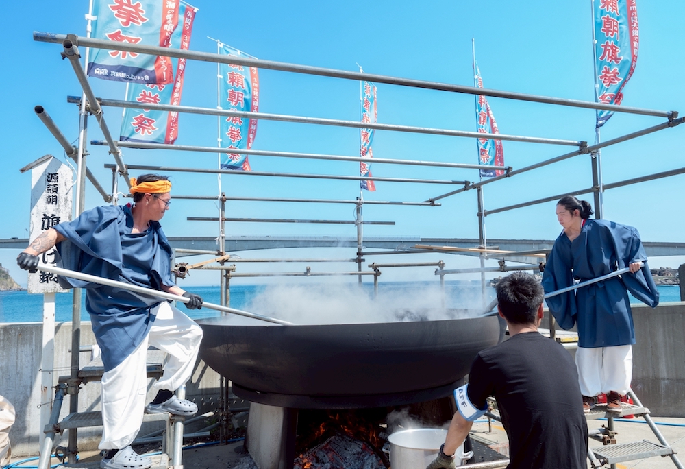実はこのお鍋、1万人分もの食事を賄うことができるんです!地元の魚介類や野菜が投入されたお鍋は、まさに五感で味わえる真鶴の海と山の恵み。そしてこの巨大な鍋での炊き出しは、お祭りとしてだけではなく「災害への備え」としての訓練も兼ねているんだそうです。