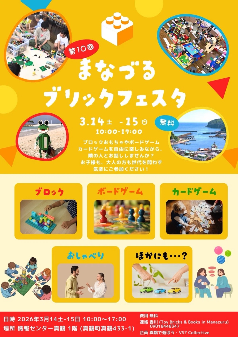 2023年3月から始まった『まなづるブリックフェスタ』……今回はレゴブロックで遊べるブース、ボードゲームやカードゲームで遊べるブース、みちのぱんのパン販売。3つのブースを運営します。