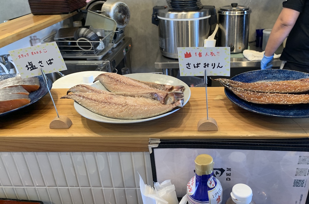 まずお店で使われる干物はすべて『魚伝(UODEN)』さんの自家製。名前からお分かりになる通り、『傳(DEN)』さんは『魚伝(UODEN)』さんの直営店。漢字の「傳」は「伝」の旧字体となるそうです。保存料や化学調味料などは一切使わない手作りの干物の美味しさは、ぜひこちらの記事でご確認ください。