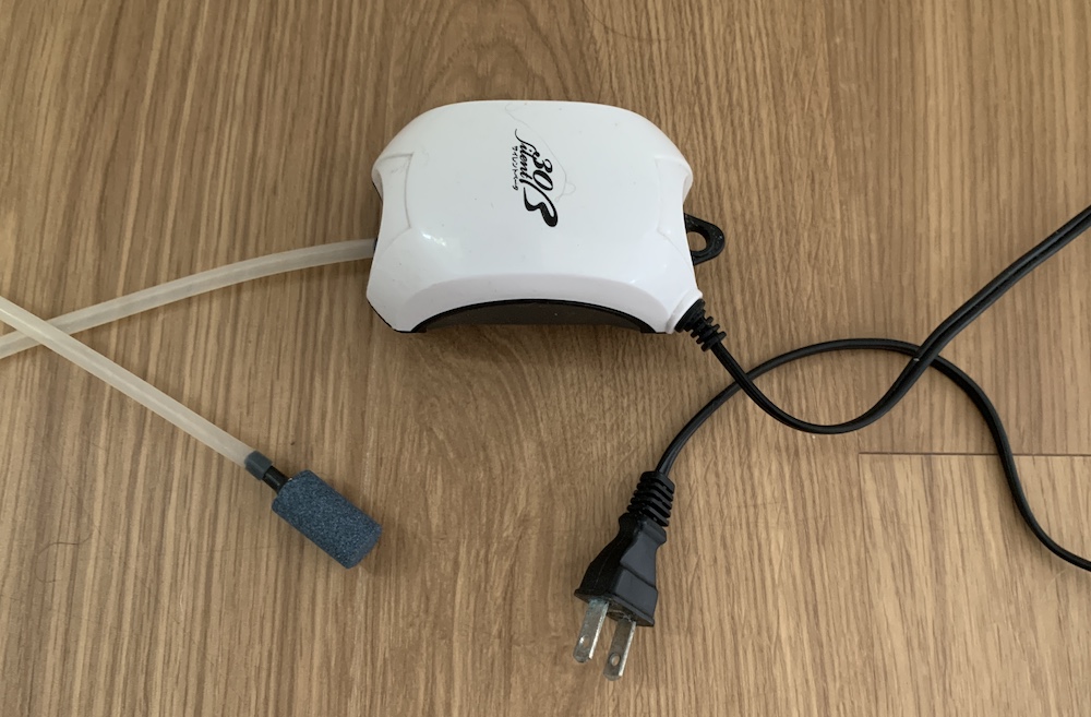 そのアイディアとはブクブクの面倒臭さを解決する商品になります。「ブクブク」というのは魚を飼育する時に使う空気を水中に溶け込ませる器具で、正式には「エアーポンプ」と「エアーストーン」、そしてそれをつなぐ「シリコンチューブ」からなる簡単な装置です。