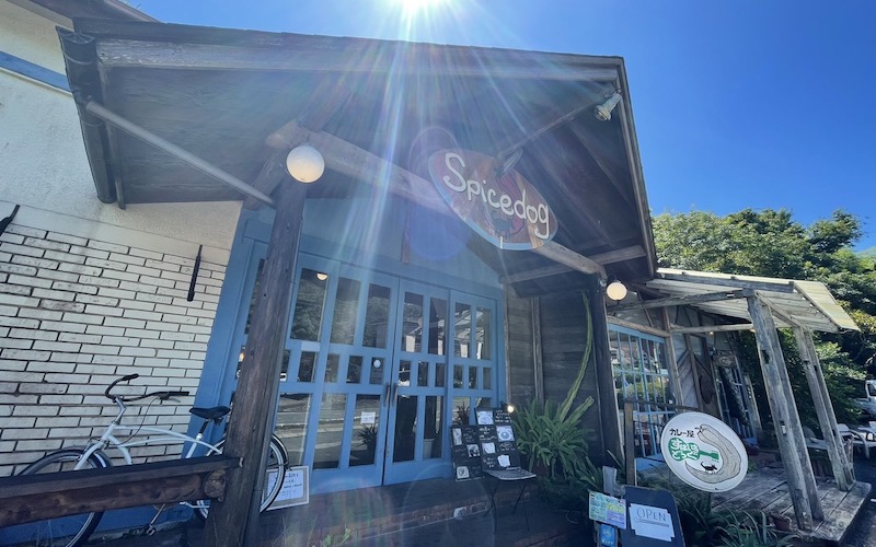 夕飯にはINUTABIさんとスパイスドッグというカレー屋さんにいき、チキンカレーと梅ジュースを飲みました。愛犬と一緒に店内でご飯を食べることができて、店主さんの趣味のロックに関するものなどもたくさんありました 。