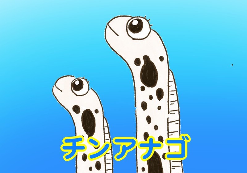 和名は顔つきが日本犬の狆(ちん)に似ていることから、この名がついたそうです。英名は「spotted garden eel」といい、"spotted"は斑点のあるという意味で、"garden eel"は直訳すると「庭・ウナギ」となり、砂底から頭を出す生態が、庭の草木が生えることに似ていることから名がついたみたいです。