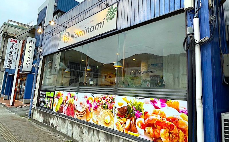 下田海中水族館に行く途中に「Naminami」というお店に行きました! 外装も内装もハワイアンなおしゃれな雰囲気のお店です。各テーブルにハワイに関する雑誌や本が置いてあって、私もハワイに行きたくなりました。