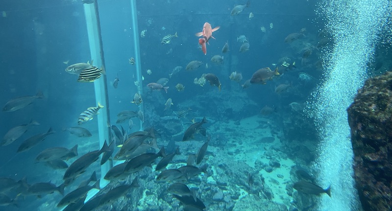下田海中水族館の最大の特徴は、天然の入り江を利用している浮遊円形水族館になっていて、まるで海の中に入っているような感覚になるところです!