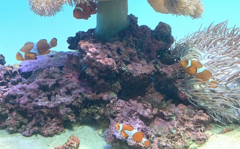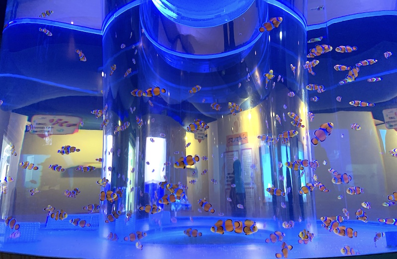 クマノミの幼魚から成魚にかけての成長を見れる水槽もありました。カクレクマノミだけが数百匹以上いるドーナツ状のリング水槽は永遠と見てられそうな気持ちになりました。